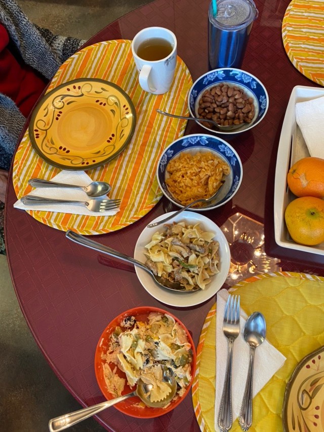 Grandma wanted a “potluck” tonight, so I served a little bit of each meal that had been made for Grandma during the past couple days. She loved it, and ate a full plate! Then, she said, “you know what we can do with all of these leftovers? You take a pound of hamburger meat and mix it with an egg–like for meatloaf. Then, we’ll take all of these leftovers, put them in the blender, and add them to the meatloaf. It turns out so good! All the flavors are going to go so well together!” She wanted me to ask my Uncle Michael if he could bring some hamburger meat over so that we could blend up these leftovers tomorrow.
